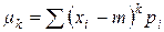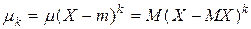 Центральным моментом порядка k для случайной величины X есть математическое ожидание степени k соответствующей центрированной случайной величины X: