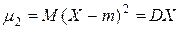 D(X) – второй центральный момент –разброс вокру г M(X).