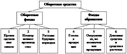 В литературе формально разделяют оборотные средства на нормируемые и ненормируемые. Причем нормируемые объединяют все оборотные фонды (1, 2, 3) и готовую продукцию на складах (4). Соответственно к ненормируемым относят продукцию отгруженную, но неоплаченную (5); денежные средства и средства в расчетах (6).