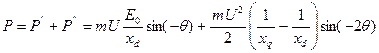Уравнения для электромагнитной мощности синхронного двигателя можно получить из векторных диаграмм. Например, для явнополюсного двигателя электромагнитная мощность равна: