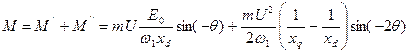В неявнополюсном двигателе x q= х d, и поэтому вторая составляющая Р" будет отсутствовать. Электромагнитный момент получим, если (3) разделим на угловую скорость поля и ротора