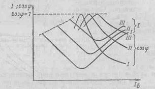 . Как следует из рис. 7, для поддержания cos φ = const с увеличением нагрузки ток возбуждения I B следует увеличивать.