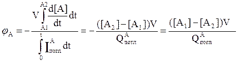 где ([A1] – [A2])V - изменение (уменьшение) концентрации реагента А за время t.