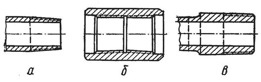 а – труба гладкая; б – муфта; в – труба с высаженными концами