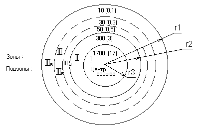 Рис. 18.1. Зоны действия взрыва:
