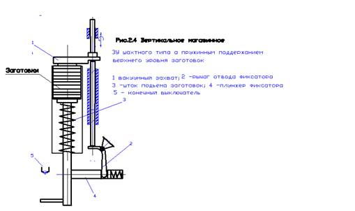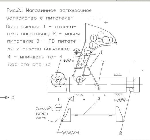 На рис.2.1 представлено МЗУ с лотковым магазином и питателем, предназначенным для загрузки-выгрузки штучных заготовок в шпиндель токарного автомата.