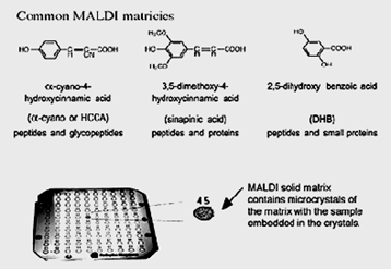 Масс-спектрометрия с лазерной десорбцией/ионизацией в матрице (MALDI-MS) впервые была использована в 1988 году Танакой, Карасом и др. С тех пор метод стал широко использоваться для анализа пептидов, белков и большинства других биомолекул. Эффективный и направленный перенос энергии во время акта индуцированной лазером десорбции приводит к большому выходу ионов незатронутого аналита.