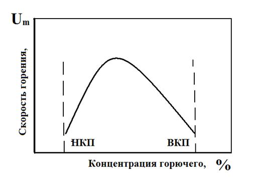 Все они имеют нижний и верхний концентрационные пределы горения, которые определяются по содержанию горючего компонента.