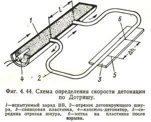 в) Метод Дотриша – сравнительный метод определения скорости детонации как правило маломощных ВВ в металлической трубе с помощью детонирующего шнура с известной скоростью детонации.