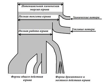 Действие на окружающую среду оказывают газообразные продукты взрыва. Схема баланса энергии при взрыве приведена на рисунке 1.