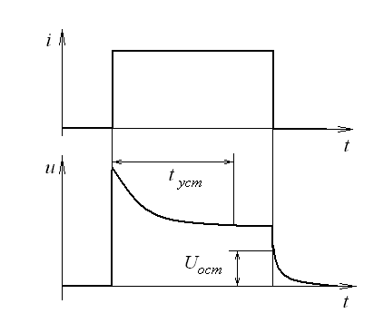 При пропускании импульса тока в прямом направлении наблюдается выброс напряжения в первый момент после включения (рисунок 1.12), что связано с повышением напряжением до тех пор, пока не закончится накопление неосновных носителей в базе диода. После этого сопротивление базы понижается и напряжение уменьшается.