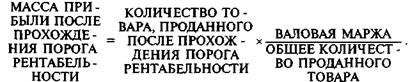 Чтобы определить массу прибыли после прохождения порога рентабельности, достаточно умножить количество товара, проданного сверх порогового объема производства, на удельную величину валовой маржи, «сидящей» в каждой единице проданного товара: