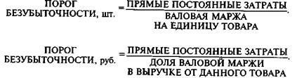 Порог безубыточности данного товара — это такая выручка от реализации, которая покрывает переменные затраты и прямые постоянные затраты. При этом промежуточная маржа равна нулю. Если, несмотря на все старания, не достигается хотя бы нулевое значение промежуточной маржи — этот товар надо снимать с производства (либо не планировать его производство заранее).