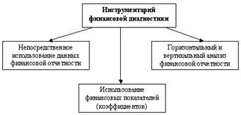 Остановимся на структуре финансовой диагностики. Финансовый инструментарий данной части диагностики весьма обширен, он включает в себя большое количество финансовых показателей (коэффициентов), которые зачастую дублируют друг друга, и не всегда очевидна необходимость использования тех или иных коэффициентов. Представляется целесообразным следующее третье положение финансовой диагностики сформулировать в виде принципа разумной достаточности использования методов финансового анализа. Суть принципа чрезвычайно проста – для целей диагностики следует использовать только те показатели, которые являются информационной основой для принятия управленческих решений. Практическая полезность данного принципа очевидна, учитывая то обстоятельство, что на многих предприятиях используется зачастую большое количество финансовых коэффициентов, перечень которых определяет финансовый директор. Если говорить о практическом воплощении принципа разумной достаточности, то на основе своего опыта работы с отечественными предприятиями, автор считает достаточным ограничиться набором средств финансовой диагностики, представленном на рис. 2.