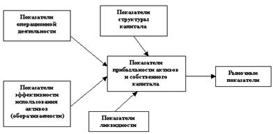 Этим можно было бы окончить описание структуры финансовых показателей. Но она будет не полной. В том случае, когда предприятие является акционерным обществом открытого типа и когда существует развитый рынок ценных бумаг, имеет смысл анализировать так называемые «рыночные показатели» типа прибыль на одну акцию, коэффициент дивидендных выплат и т.п. Более подробно описание приведенных выше коэффициентов и технологию их использования для целей диагностики можно найти в книге автора «Финансовый менеджмент предприятий», К. Издательский дом «Максимум», 2001.