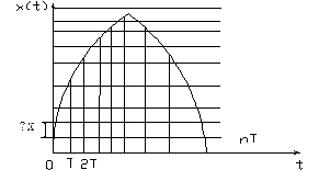 Процесс квантования по времени состоит из измерения непрерывного сигнала х(t), в дискретные моменты времени 0,Т,2Т….nT, отстоящие друг от друга на равные промежутки Т. Этот промежуток называется периодом или шагом дискретизации.