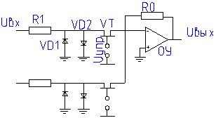 Величина сопротивления R1 подобрана так, чтобы при открытом полевом транзисторе VТ величина падения напряжения на нем была незначительна, тогда коэффициент передачи ОУ: