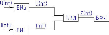 Амплитуда вектора Z(t) может быть найдена как результат деления амплитуды напряжения на амплитуду тока, а угол вектора Z(t) находится как разность фазовых углов напряжения и тока. При практической реализации этих органов удобно пользоваться ортогональными составляющими.