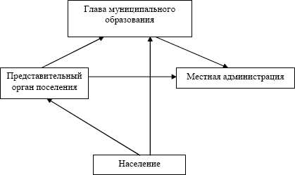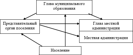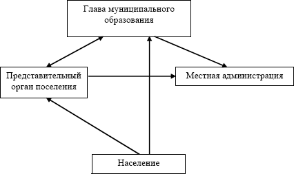 Данная схема является исключением из общего правила, так как при ее использовании допускается отступление от принципа разделения властей. Достоинством такой схемы является сокращение управленческого аппарата и сведение к минимуму возможности конфликта между представительной и исполнительной властью в муниципальном образовании.