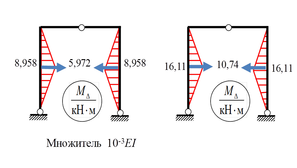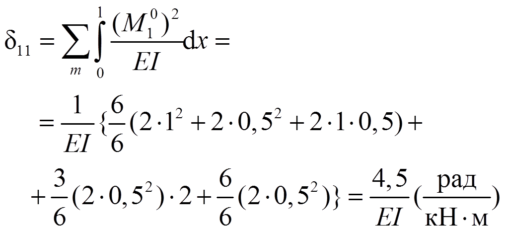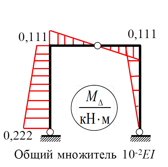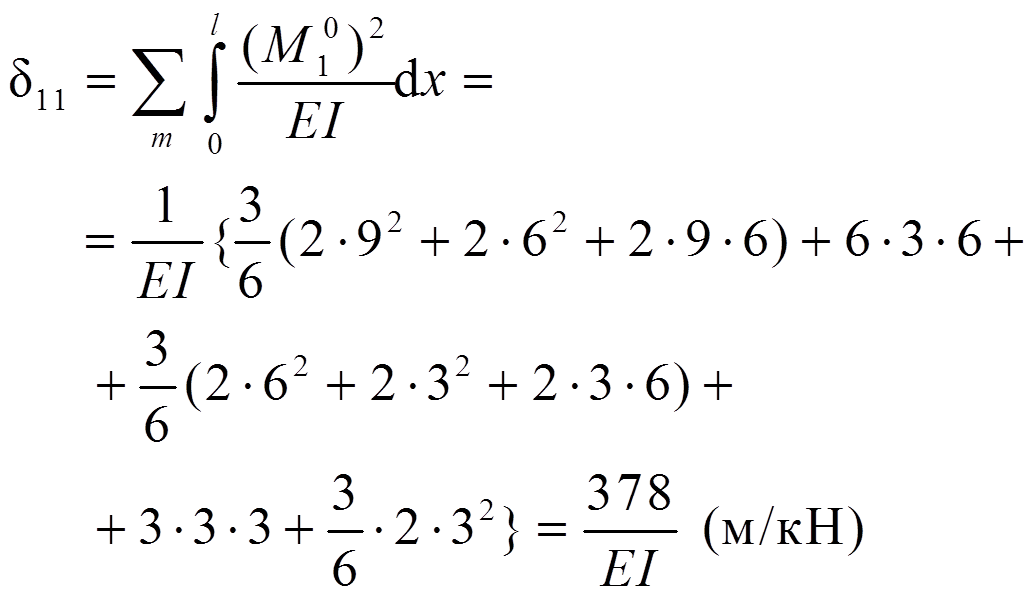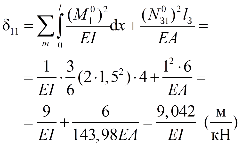 X 1= – Δ1Δ / δ11 = 0,222∙10-2 EI (кН)