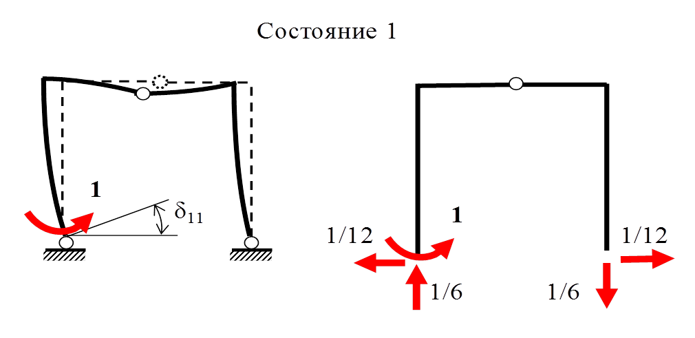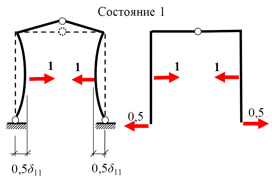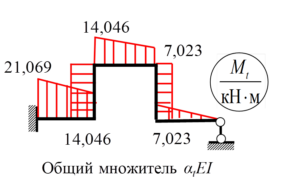 X 1= – Δ1 t / δ11 = –2,341α t EI (кН)