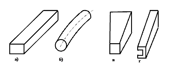 Все многообразие конструктивных элементов машин в СМ сводится к трем основным формам, к которым относят стержни, оболочки и массивные тела.
