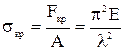 При сжатии стержней при достижении критической сжимающей нагрузки Fкр происходит потеря устойчивости – стержень искривляется и самостоятельно не может занять прежнее прямолинейное положение. Напряжение в сжатом стержне s = F/A. В зоне упругих деформаций величина критической силы определяется по формуле Эйлера: