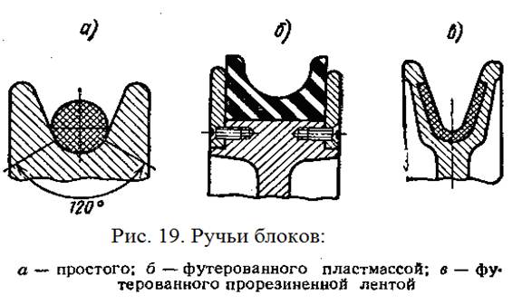 Блоки для канатов отливают из чугуна и стали. Кроме того, блоки можно изготавливать штамповкой или сваркой из стали. Наиболее рациональным методом изготовления блоков является штамповка.