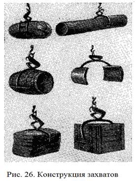 Специализированные захваты соответствуют форме и свойствам грузов: захваты для бочек, ящиков, кип, мешков. Могут поддерживать поднятый груз снизу, за края, выступы. По конструкции выполнены в виде зажимов и клещей и применяются для грузов с твердой и мягкой тарой (мешки, ящики, брёвна, листовой металл).