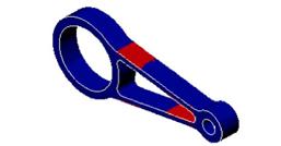 2) COSMOSXpress отобразит области модели с запасом прочности ниже указанного значения красным цветом (опасные области), а области с более высоким запасом прочности - синим цветом (безопасные области);
