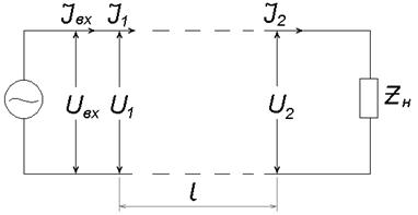 В линиях небольшой протяженности значение тока практически одинаково в начале и в конце линии. Если длина линии велика, то при высокой частоте значение тока в начале и в конце линии различно. Падение напряжения в разных точках линии будет иметь также разное значение. Электрическая модель длинной проводной линии представлена на рис. 6.1.