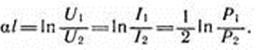 Затухание выражают в неперах. Непер – натуральный логарифм отношения двух напряжений, токов или половина логарифма отношения мощностей на входе и выходе. Если линия обладает затуханием в 1 Нп, то это значит, что ток и напряжение в конце линии уменьшаются в е = 2,718 раза, а мощность – в e2 = 7,39 раза. При a=2 Нп отношение U 1/ U 2 = e 2»7,4, a P l/ P 2=e4 » 55.
