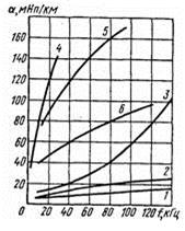 На рис. 6.2 приведены данные о затухании некоторых воздушных и кабельных линий связи [8].
