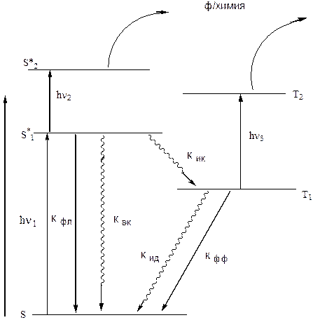 2-х квантовая реакция через Т-состояние (облучение 250 и 333 нм).
