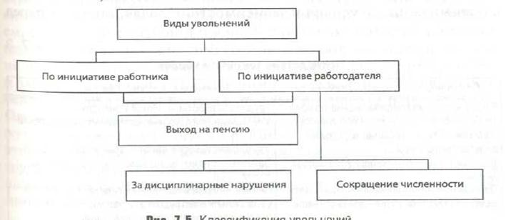 Виды увольнений представлены на рис. 7.5. В ст. 77 Трудового кодекса Российской Федерации выделяются следующие основания для прекращения трудового договора: