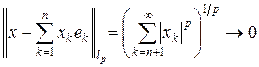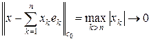 Пусть ek = (0,¼, 0, 1, 0,¼), k = 1, 2,¼ – последовательность элементов из c 0. Тогда любой элемент x Î c 0 представляется в виде
