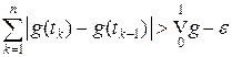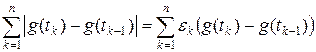 Определение 5.1. Функция g : [ a, b) ® R называется функцией ограниченной вариации, если существует число c такое, что для любого разбиения a = t 0 < t 1 < ¼ < tn < b справедливо неравенство