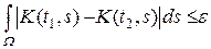 и удовлетворяющих условию | K (t 1, s) – K (t 2, s) | < e / m (W) выполнено | t 1 – t 2 | < d. Тогда