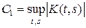 Пусть | K 0 (t, s) | £ C 1 и | t – s | £ R для любых t и s из W. Тогда