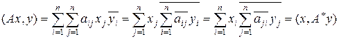 рассмотрим оператор A : C n ® C n. Пусть оператор A задан матрицей (ai j). Построим к нему сопряженный оператор A*. Имеем