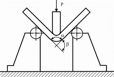 В качестве характеристик пластичности при изгибе используют стрелу прогиба и загиба β, являющийся дополнительным до 180° к углу изгиба α (см. рис. 2.57). Угол β возрастает по мере повышения деформационной способности материала, а угол α уменьшается.