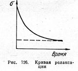 Кривая изменения напряжения от времени (кривая релаксации) в образце, деформированном на постоянную величину, имеет вид, схематично показанный на рис. 126. Спад напряжений особенно интенсивен в первые часы. С течением времени кривая асимптотически приближается к какому-то определенному значению напряжения.