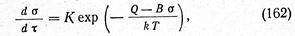 Как видно из формулы (162), скорость релаксации dσ/dτ растет экспоненциально с повышением температуры.