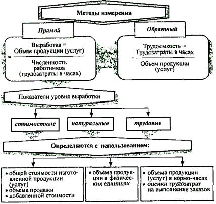 Рис. 7.1. Методы измерения и показатели уровня производительности труда на предприятиях