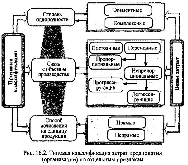 При планировании, учете и анализе используется классификация затрат по определенным признакам. Основными из них являются степень однородности затрат, возможность их определения для отдельных разновидностей продукции, связь с объемов производства рис.9.1
