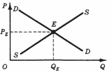 Теперь, имея некоторое представление о спросе и предложении, мы можем перейти к анализу их взаимодействия. Совместим линии спроса и предложения на одном графике (рис. 3). Линия DD является графическим изображением функции спроса от цены, линия SS - функции предложения от цены. Координатами точки Е являются равновесная цена РЕ и равновесный объем QE. В этой точке достигается равенство: