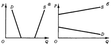 На рис. 5 изображены две ситуации, в которых линии спроса и предложения не имеют общих точек.