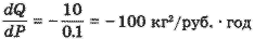 Однако непосредственное использование производной как характеристики реакции спроса на изменение цен не дает ответа на ряд вопросов, интересующих экономиста. Пусть повышение цены за 1 кг картофеля на 10 коп. снижает годовой объем спроса на 10 кг, т. е. ΔР = 0.1 руб./кг, ΔQ = -10 кг/год (знак "минус" соответствует уменьшению). Считая эти изменения малыми, можно приближенно оценить производную: