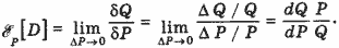 Перечисленные (и иные) трудности можно преодолеть, если в качестве основного показателя реакции спроса на изменение цены использовать не производную, а эластичность спроса по цене - предел отношения относительного приращения объема δQ = ΔQ/Q к относительному приращению цены δР = ΔР / Р при условии, что последнее стремится к нулю: