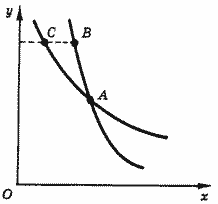 Предположим, что две кривые безразличия пересекаются в точке А (рис. 3).
